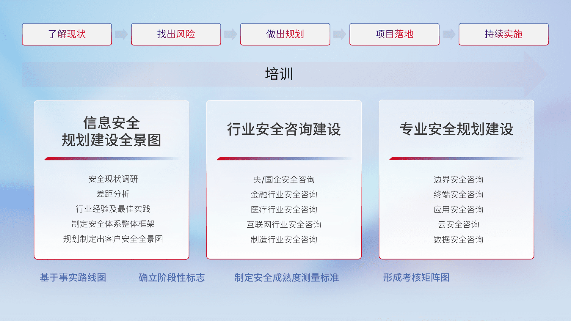 通过专业的法律咨询解读、、、、合规架构体现、、、差异化解决方案、、、、测试实施支持等服务,,,为客户量身打造等保合规体系。。。